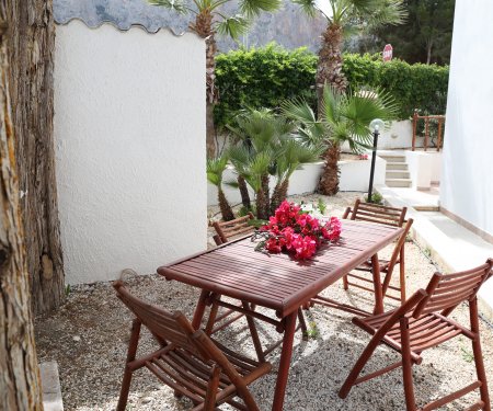 Grande camera duplex in seminterrato con ingresso su zona giorno con clima, angolo cottura a vista (fornelli elettrici) zona pranzo, frigorifero e tv. Dotata di 2 camere da letto adiacenti, entrambe con letto matrimoniale. Bagno con doccia ad angolo, aeratore, lavabo e wc (no bidet). In grado di ospitare quattro persone (fino a 6 su richiesta con aggiunta lettino a castello ove disponibile) – MQ 50